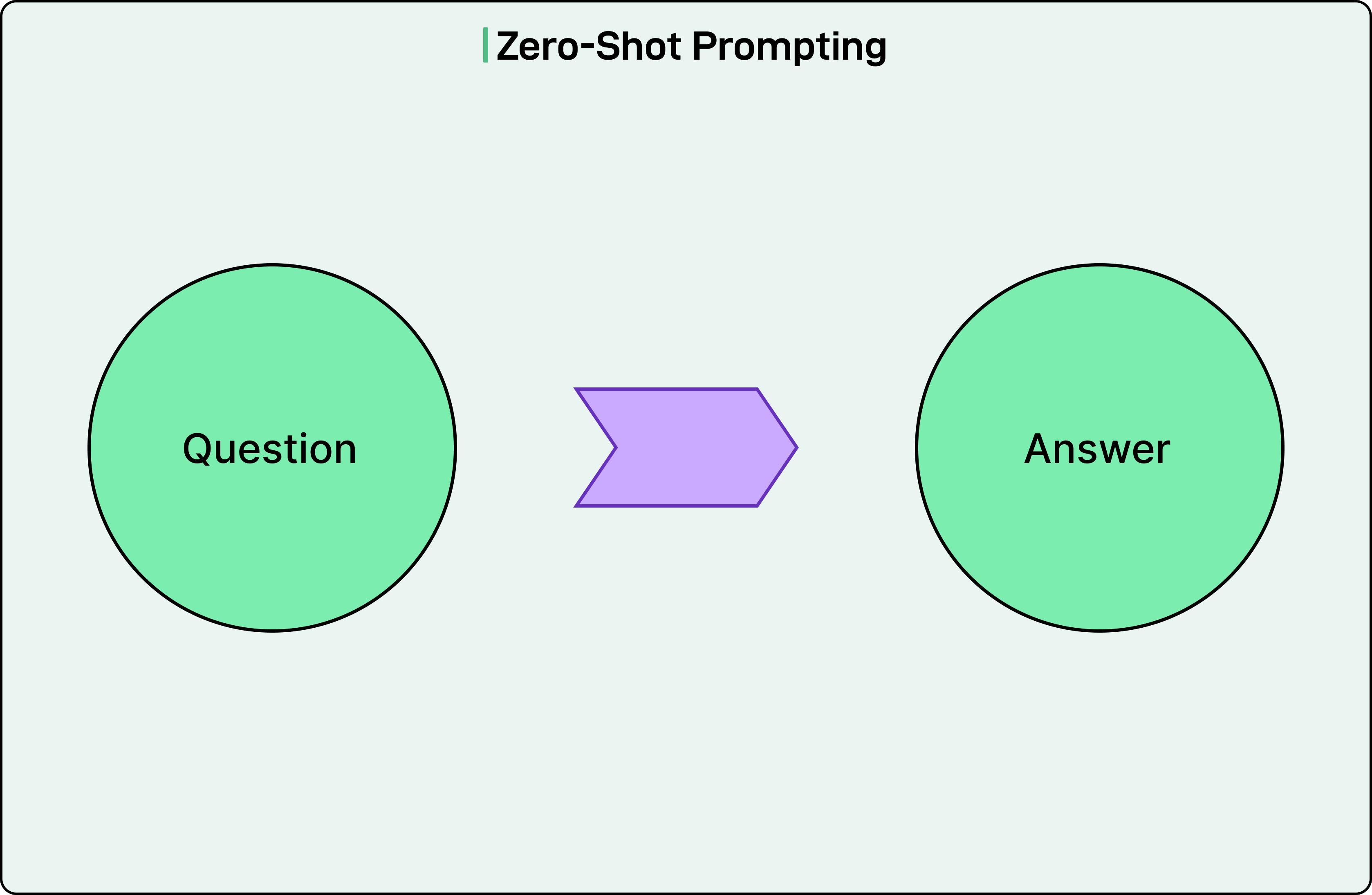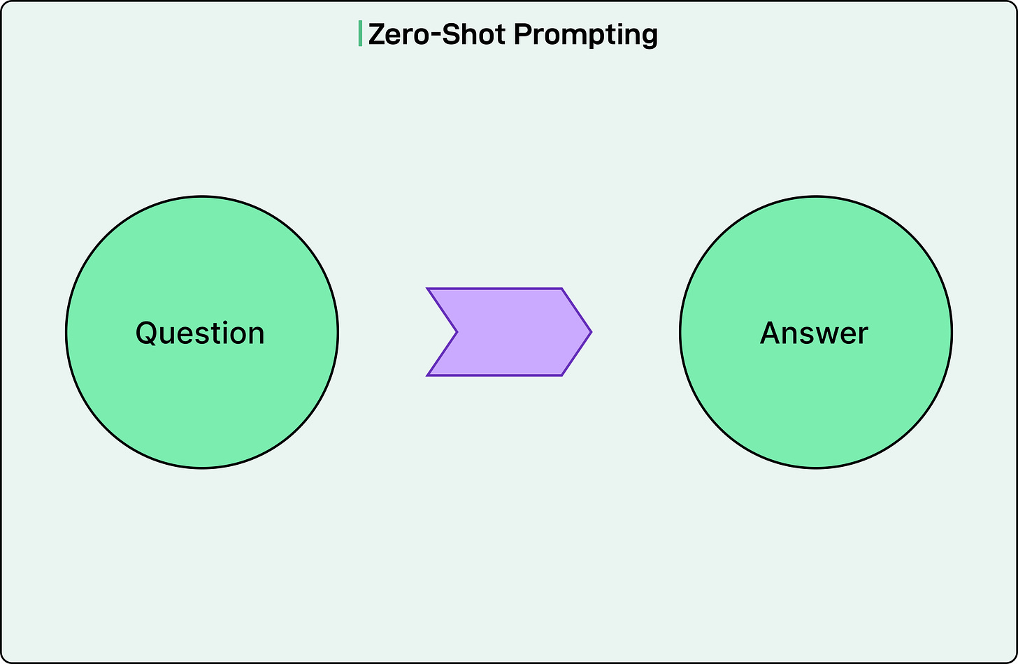 Zero-shot prompting means giving the model instructions without providing any examples. In this approach, we simply describe what we want, and the model attempts to fulfill the request based on its training.