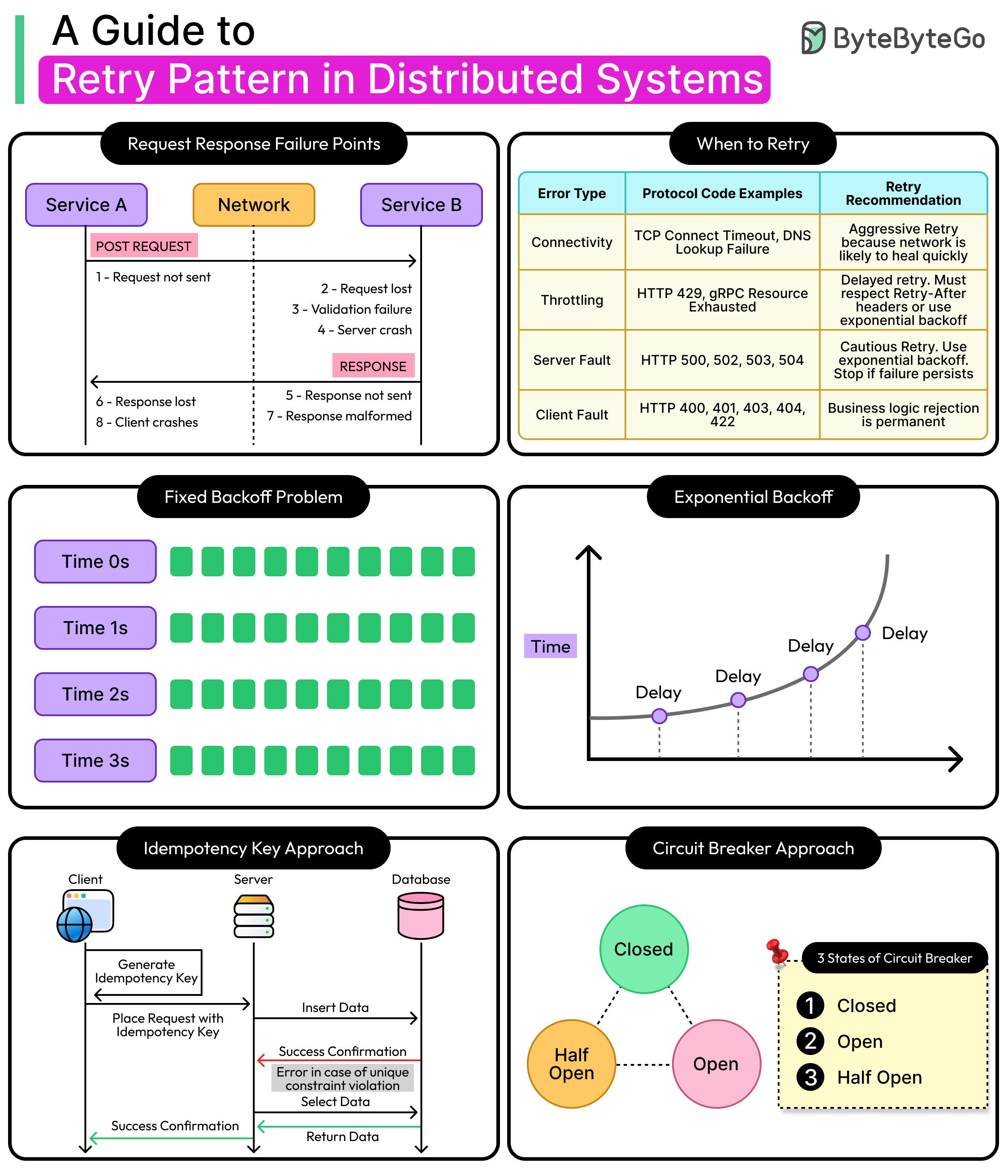 However, retries are both essential and dangerous in distributed systems. On the one hand, they transform unreliable networks into reliable ones. But on the other hand, indiscriminate retries can lead to latency amplification, resource exhaustion, and cascading failures that can take down entire platforms.