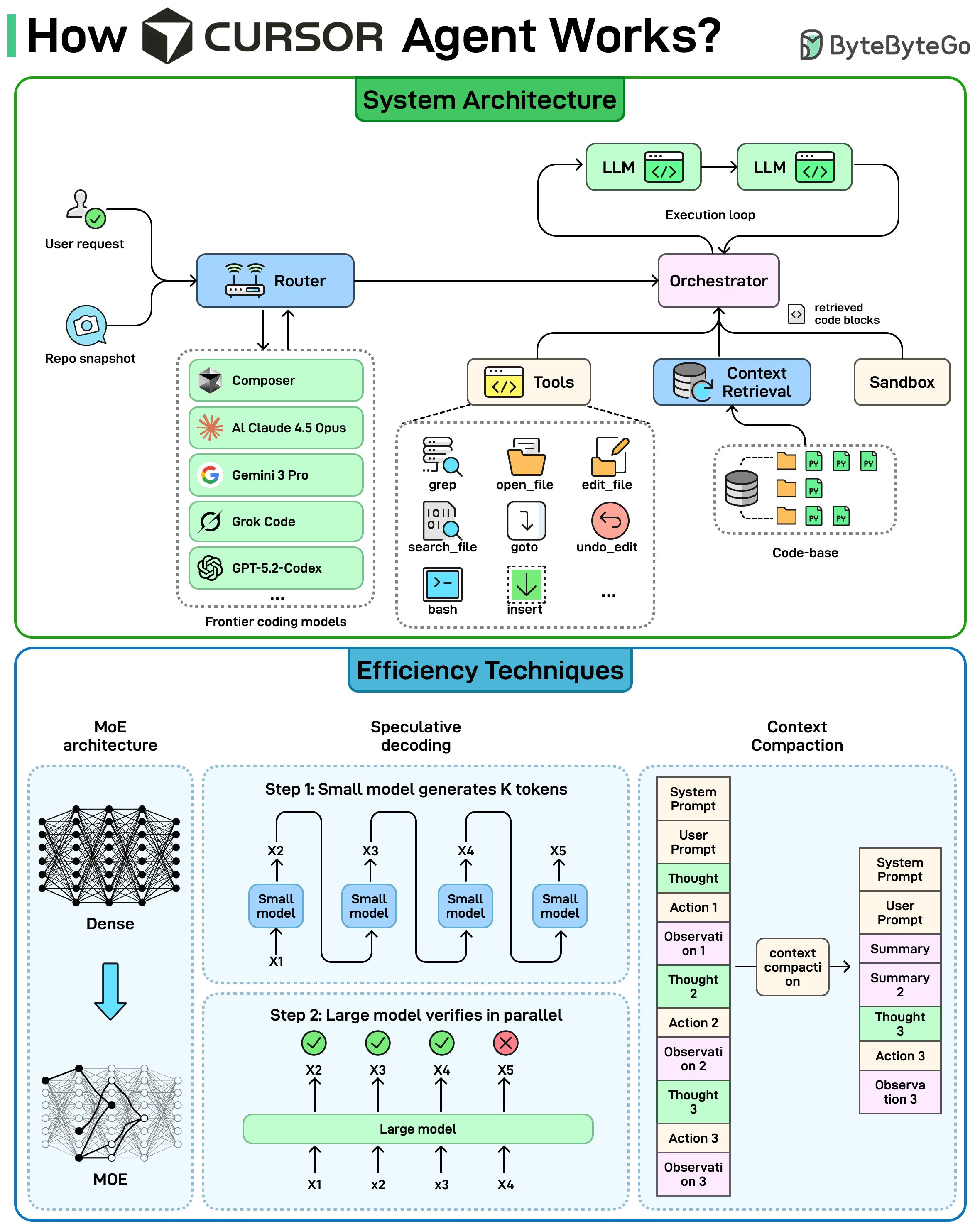 Inside Cursor, a router first picks a suitable coding model (including Composer) to handle the request.