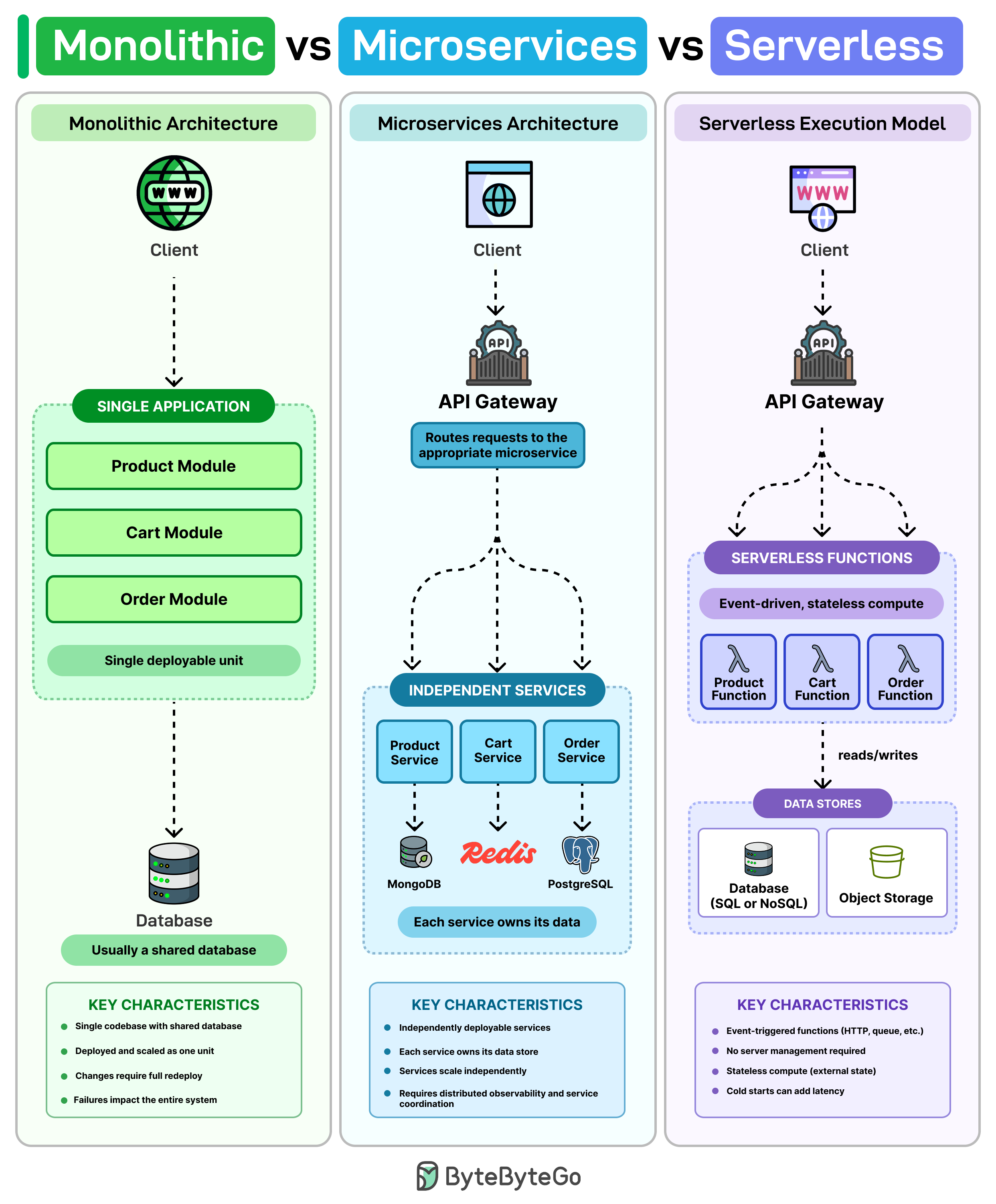 Monolithic vs Microservices vs Serverless