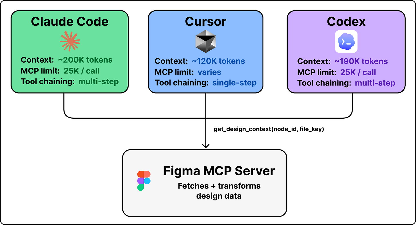 Figma’s MCP server does not serve a single client. It serves Claude Code, Cursor, Codex, and any other MCP-compatible tool. Each agent has different context window sizes, different tool-calling behaviors, and different levels of sophistication in how it sequences multiple tool calls. A workflow that works well in one agent may not work the same way in another.