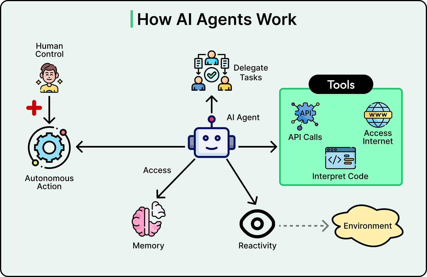 See the diagram below that illustrates the concept of an AI agent: