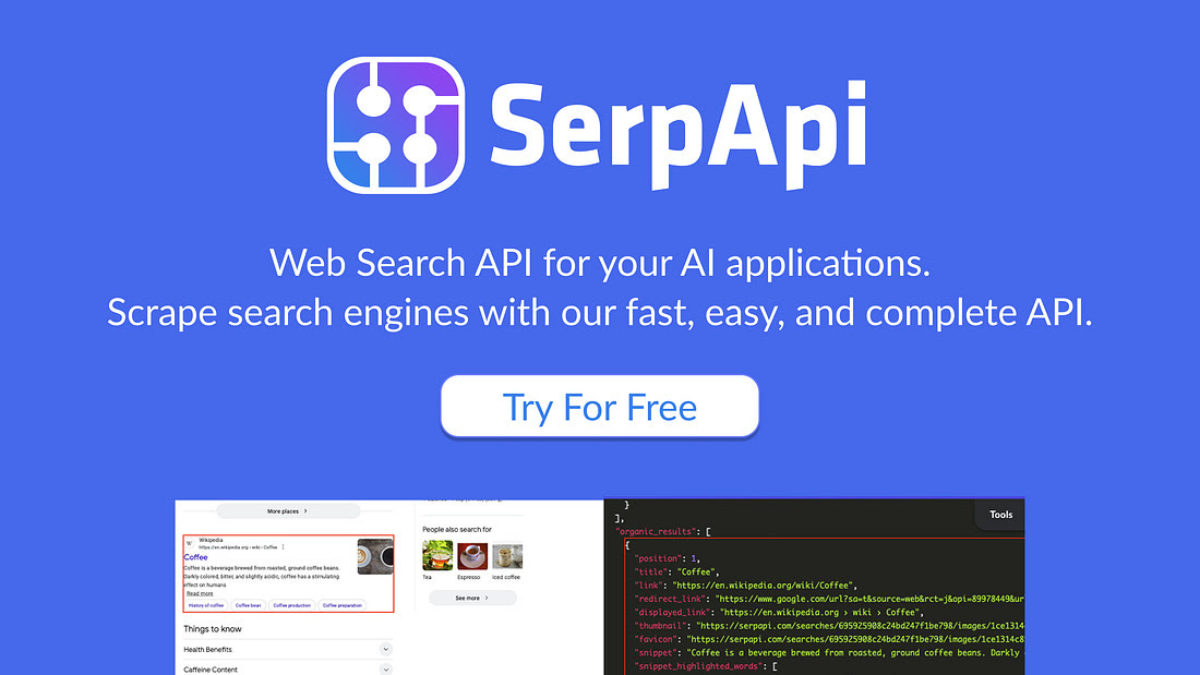 They’re using SerpApi: the industry-standard Web Search API that shares access to search engines with a simple API. Trusted by Uber, NVIDIA, and more. Start with 250 free credits/month.