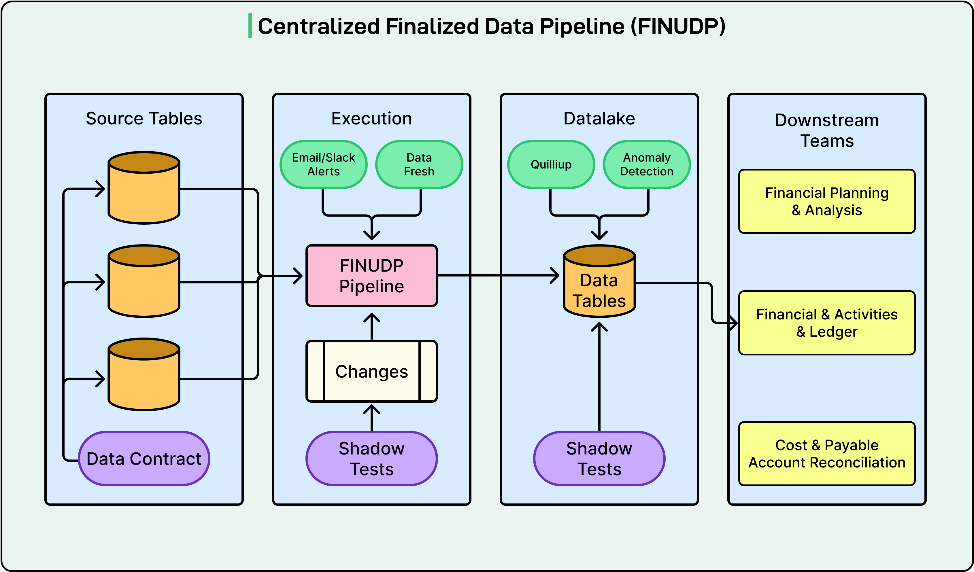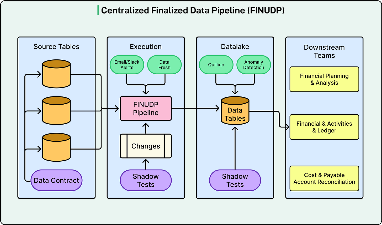 Finally, downstream teams (including Finance, Planning, and Ledger teams) consume the data for their specific needs.