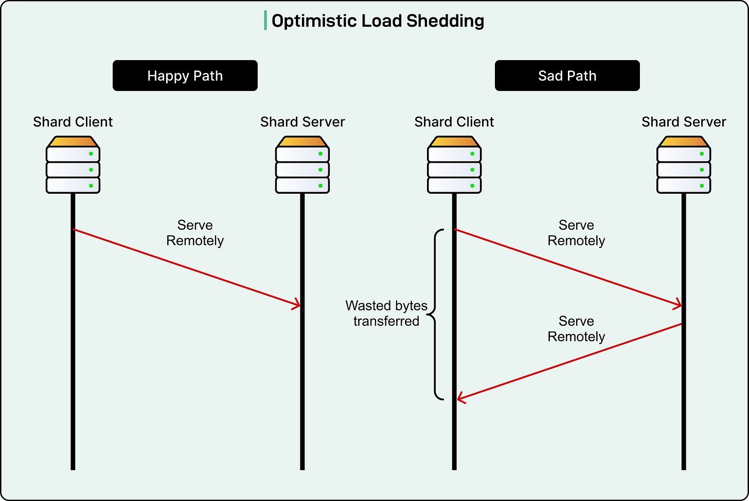 If the shard server must refuse the request due to overload, it does not send a simple rejection message. Instead, it returns the shard client’s own lazy capability as the response.
