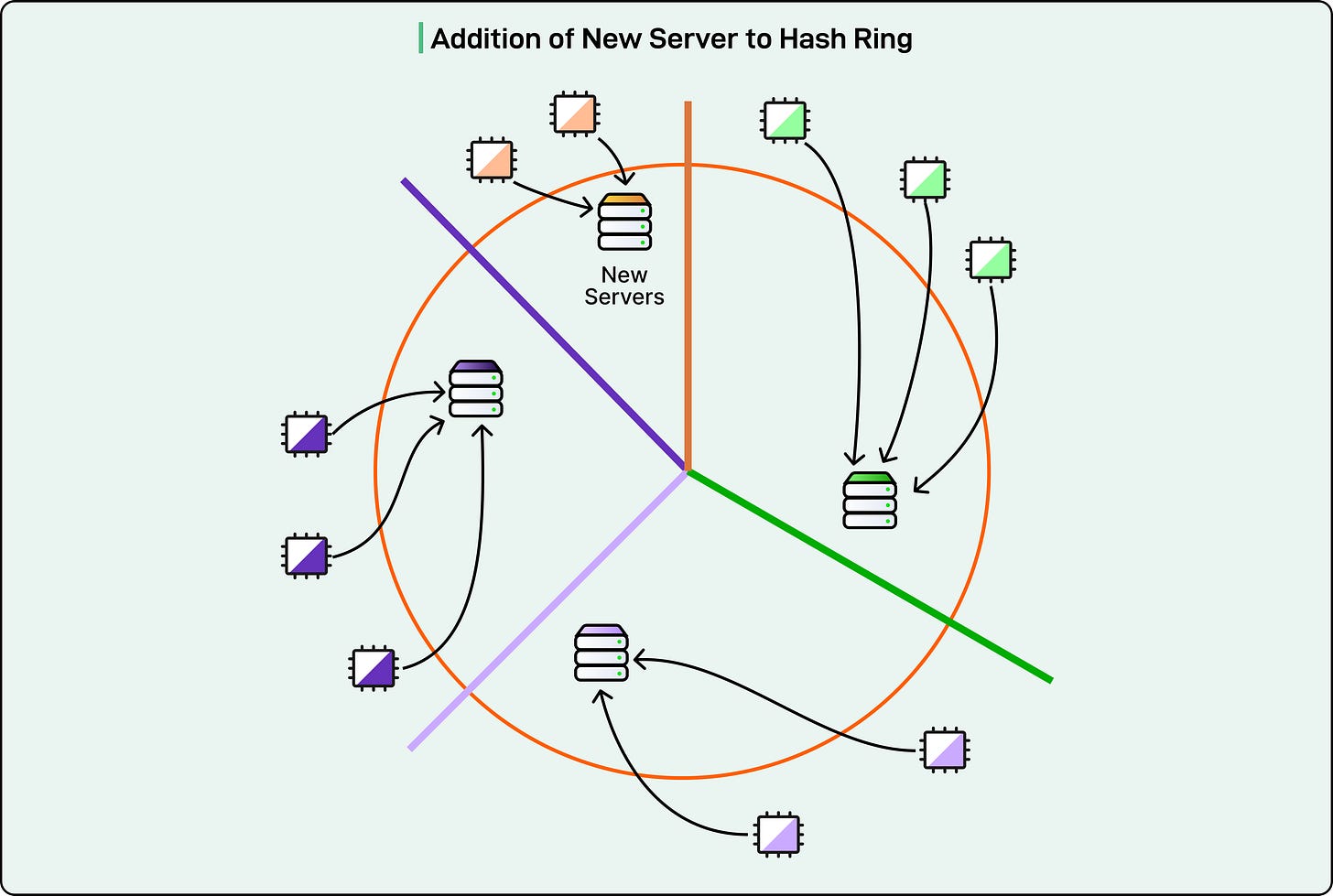 Similarly, when a new server joins, only Workers in a specific range move to the new server.