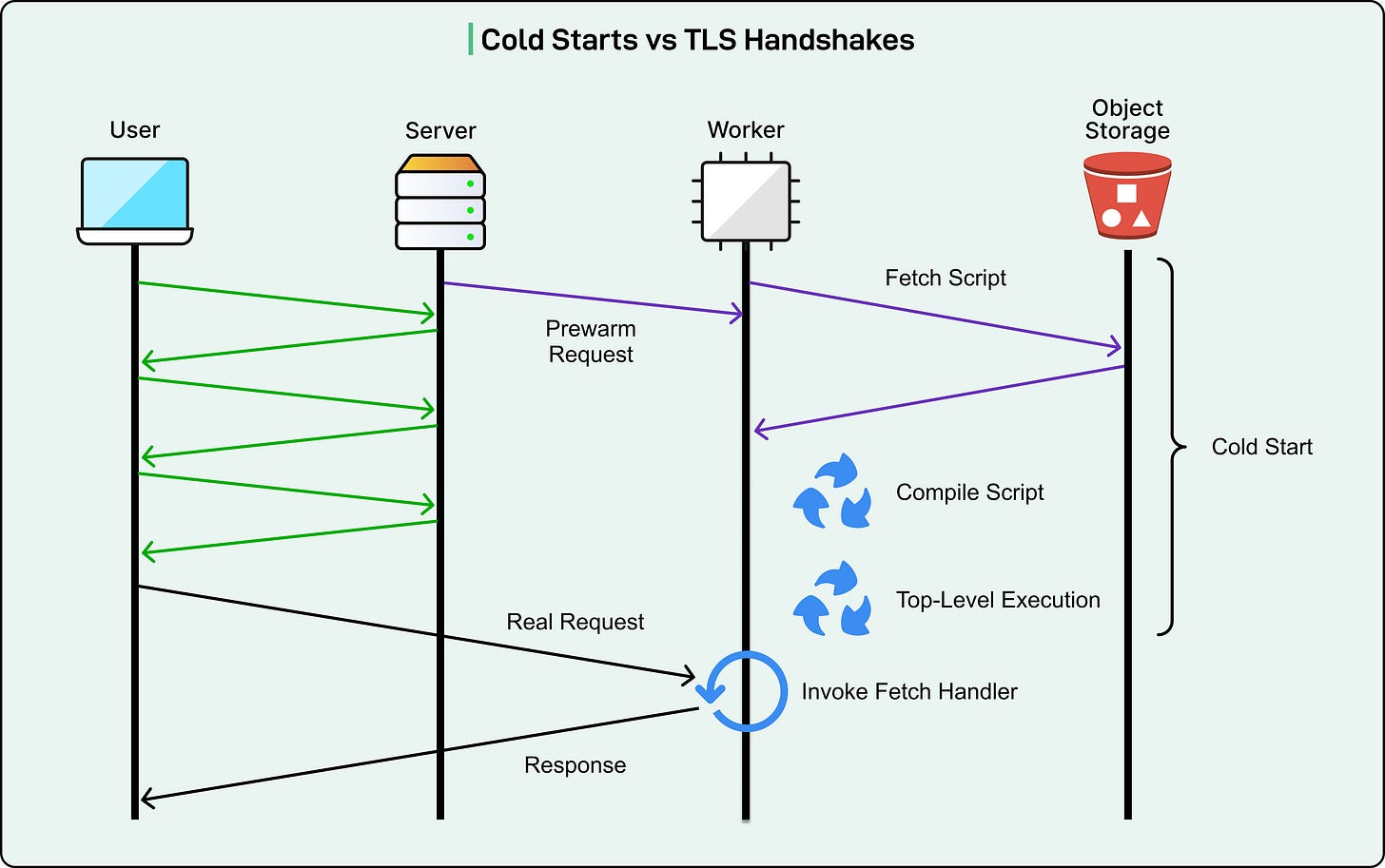 In 2020, Cloudflare introduced a solution that masked cold starts by pre-warming Workers during TLS handshakes.