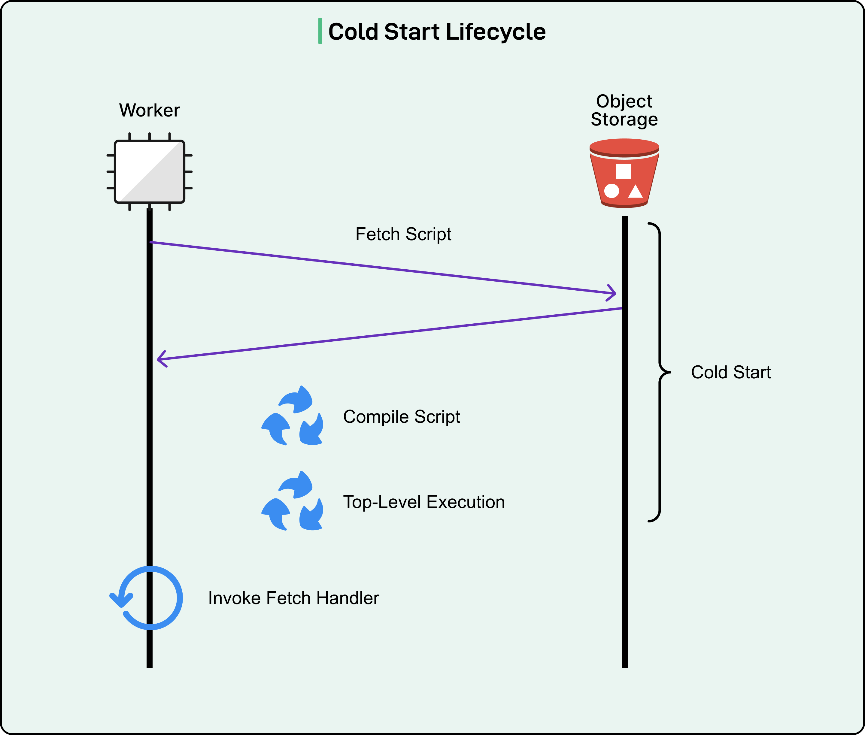 A cold start occurs when serverless code must initialize completely before handling a request. For Cloudflare Workers, this initialization involves four distinct phases: