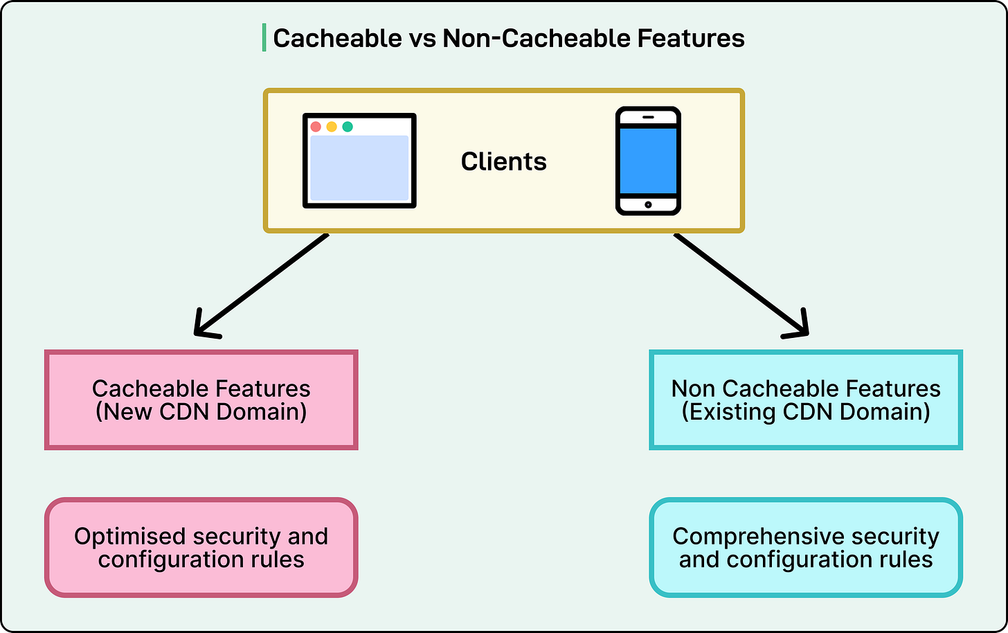 By splitting these two categories, the team could optimize how requests were handled. The team created a new CDN domain dedicated to serving cacheable APIs with lighter security rules and faster routing. This reduced unnecessary checks and freed up computing capacity on the edge servers. The result was a much higher throughput at the gateway level, meaning more users could be served simultaneously without adding more infrastructure.