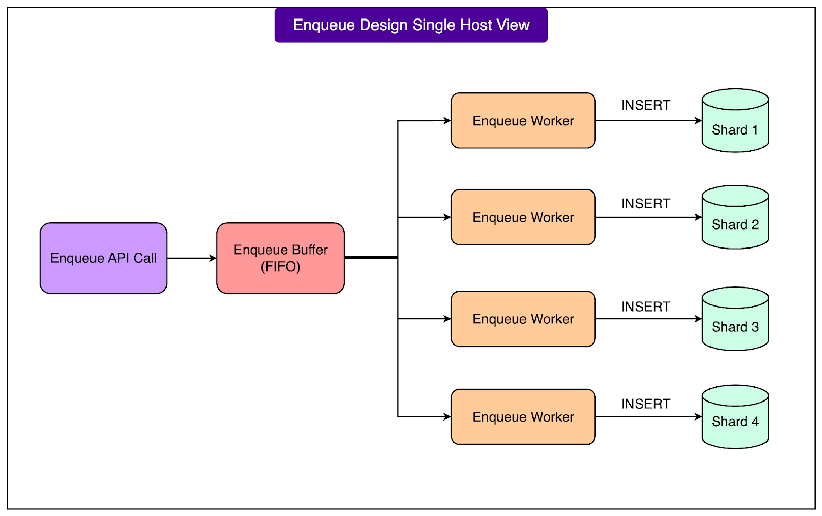 Since FOQS processes trillions of enqueue operations per day, this part of the system must be extremely well optimized for write throughput while also being careful not to overload the underlying MySQL shards. Facebook designed the enqueue pipeline to use buffering, batching, and protective mechanisms to maintain stability under heavy load.