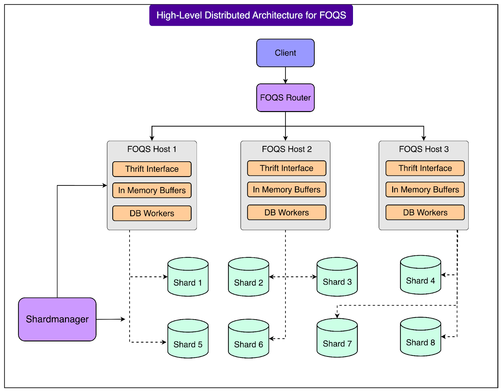On top of these per-shard indexes, each FOQS host runs a component called the Prefetch Buffer. This buffer continuously performs a k-way merge across the indexes of all shards that the host is responsible for.