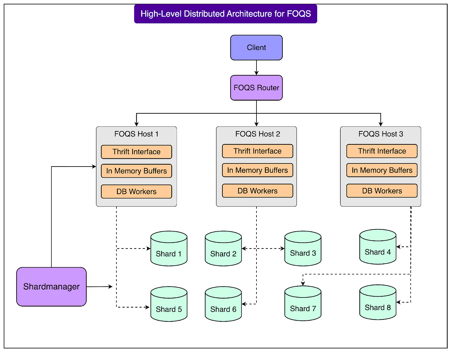 Every item in FOQS has a FOQS ID that encodes the shard ID and a unique primary key. When a client wants to acknowledge or reject an item, it uses this shard ID to route the request to the correct FOQS host. This step is crucial because only the host that currently owns the shard can modify the corresponding MySQL rows safely. By routing directly to the right place, FOQS avoids unnecessary network hops and ensures that updates are applied quickly and consistently.