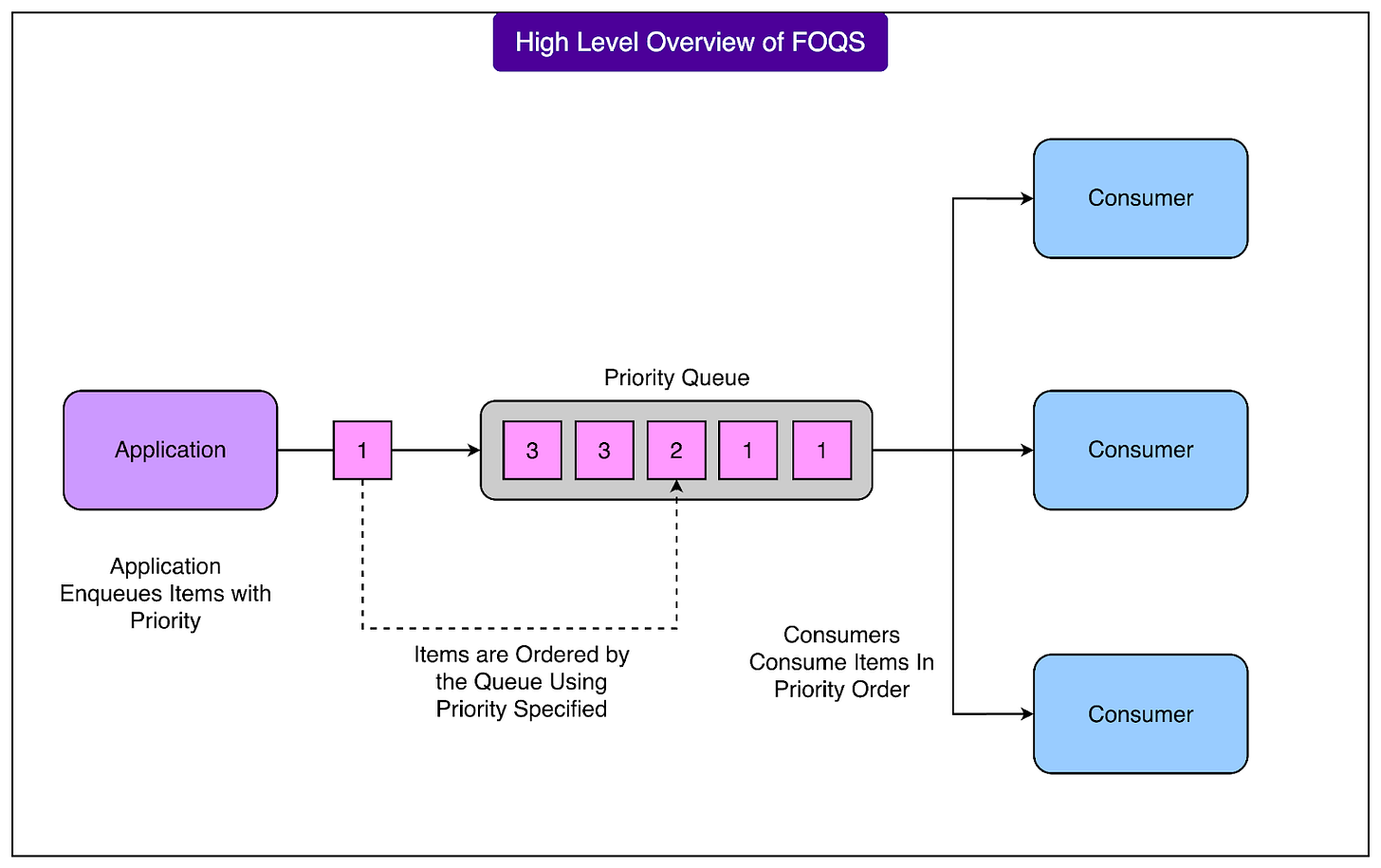 A topic acts as a logical priority queue, identified by a simple string name. Topics are designed to be lightweight and dynamic. A new topic is created automatically when the first item is enqueued to it, and it is automatically cleaned up when it becomes empty. There is no need for manual provisioning or configuration.