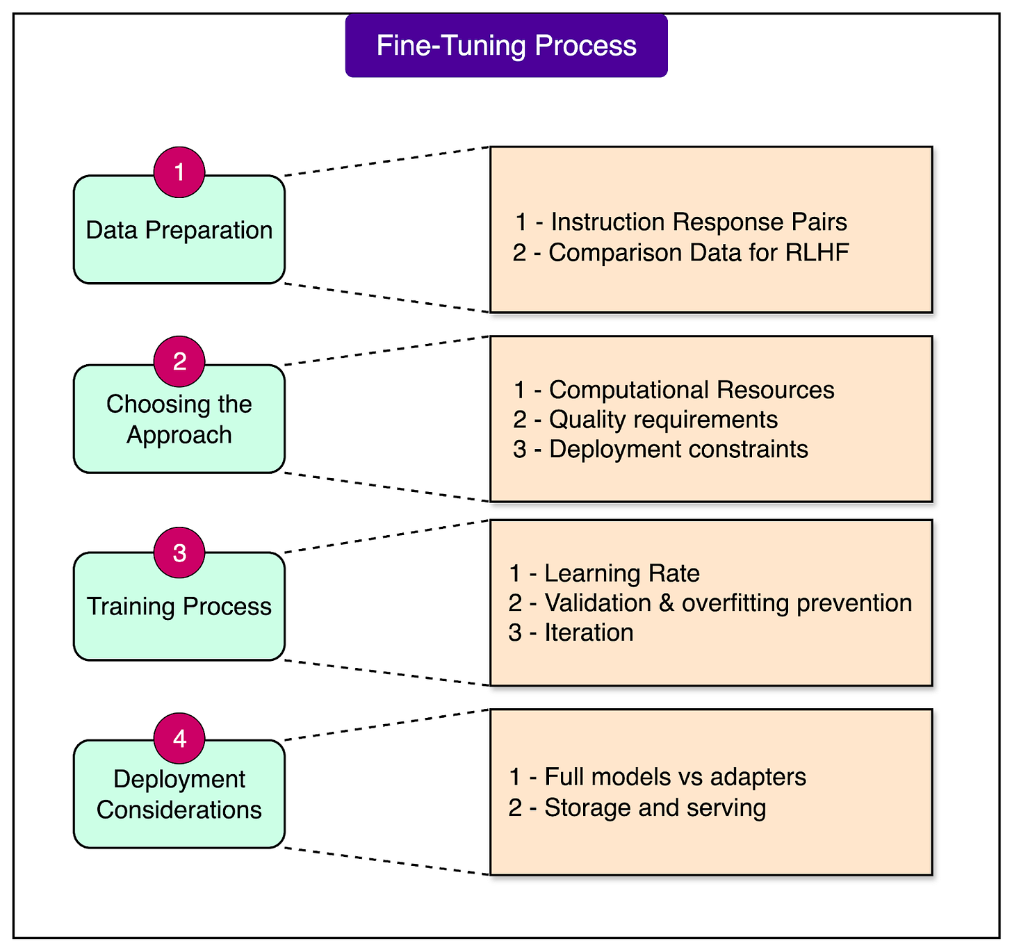 Successfully fine-tuning a model requires careful planning and execution across several stages. Understanding this process helps you avoid common pitfalls and make informed decisions that align with your goals and constraints.