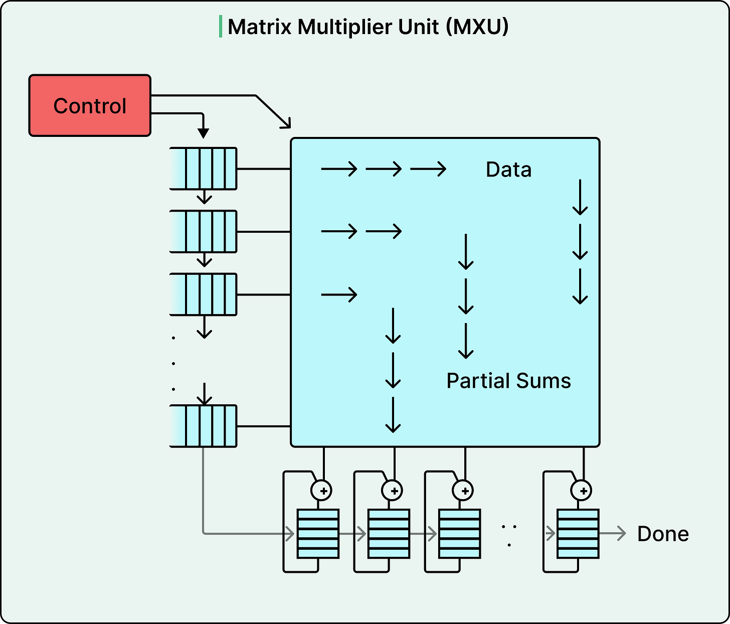 The Matrix Multiply Unit, or MXU, is the systolic array itself.