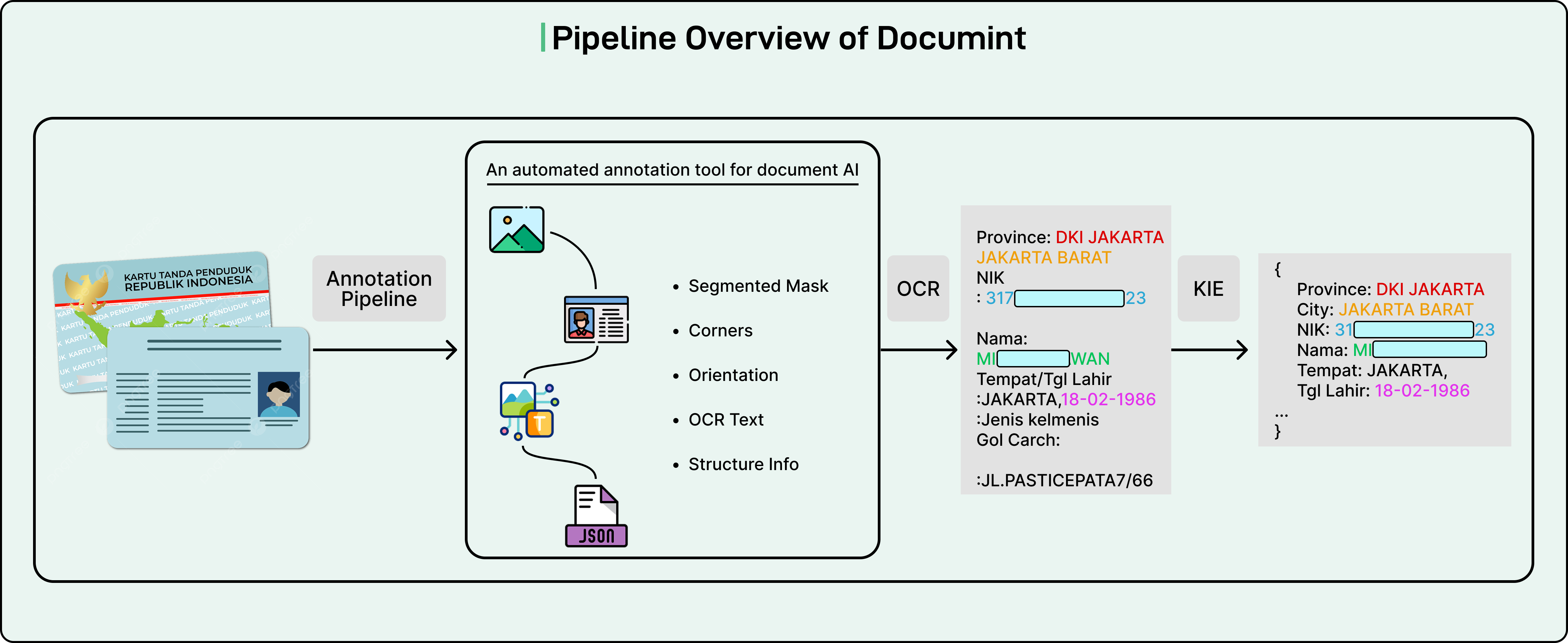 To generate a preprocessing dataset, Grab built Documint, an internal platform that creates an auto-labelling and preprocessing framework for document understanding.