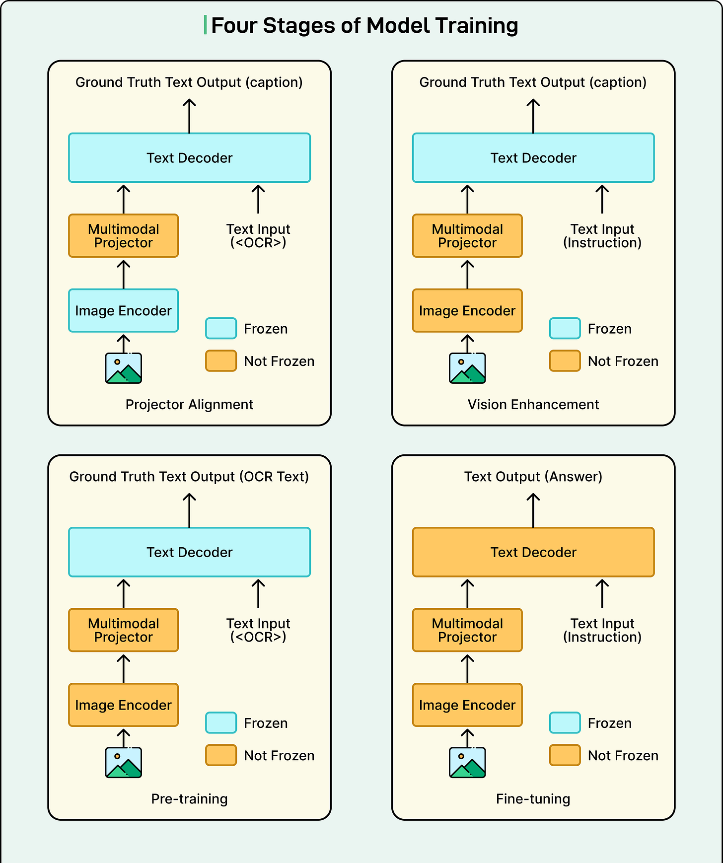 Stage 2 involved vision tower enhancement. The team trained the vision encoder on a vast and diverse set of public multimodal datasets. These datasets covered tasks like visual question answering, general OCR, and image captioning. This stage improved the model’s foundational visual understanding across various scenarios.