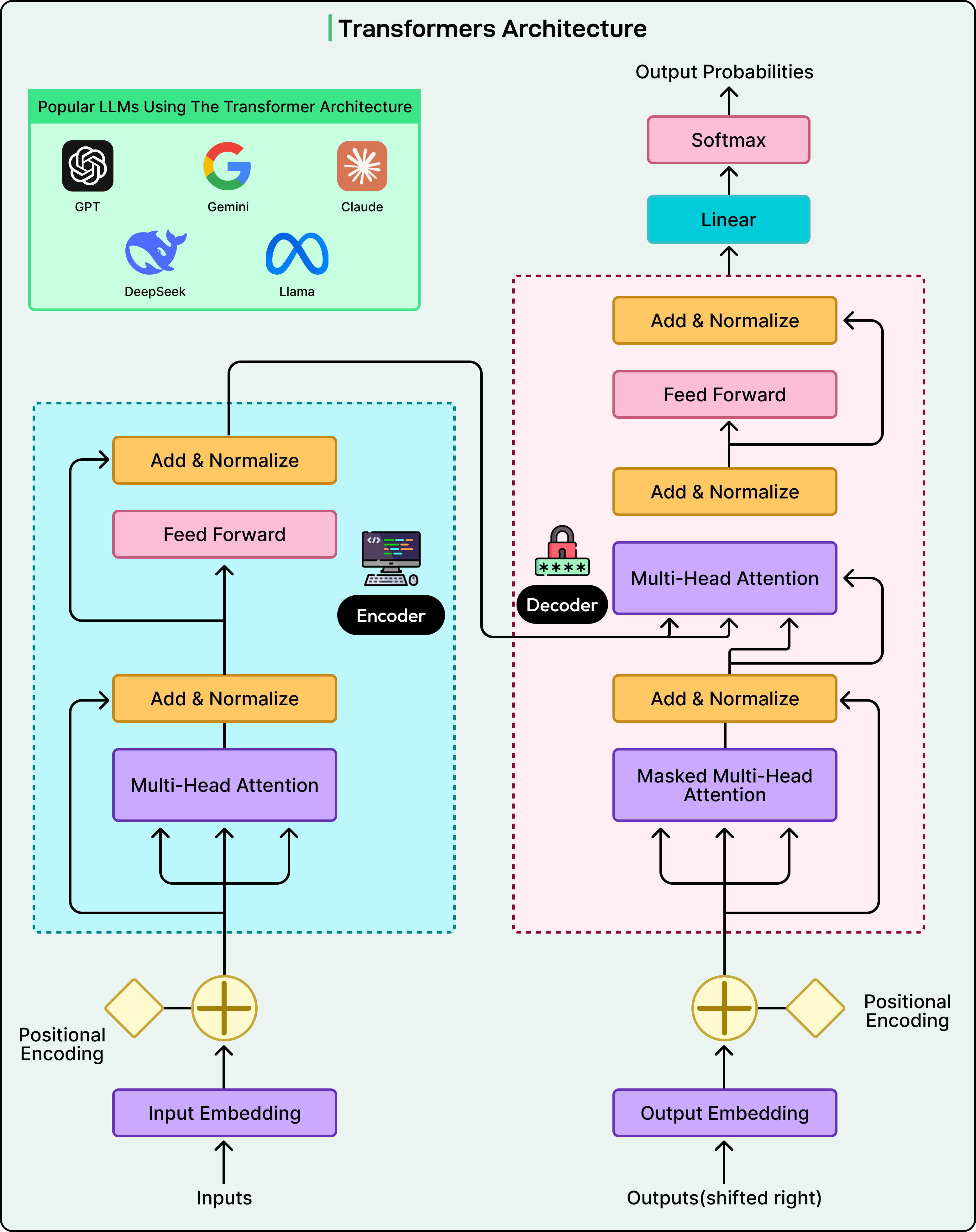 The architecture underlying modern LLMs is called the Transformer, introduced in a 2017 research paper with the fitting title “Attention Is All You Need.” This architectural breakthrough made today’s sophisticated language models possible.