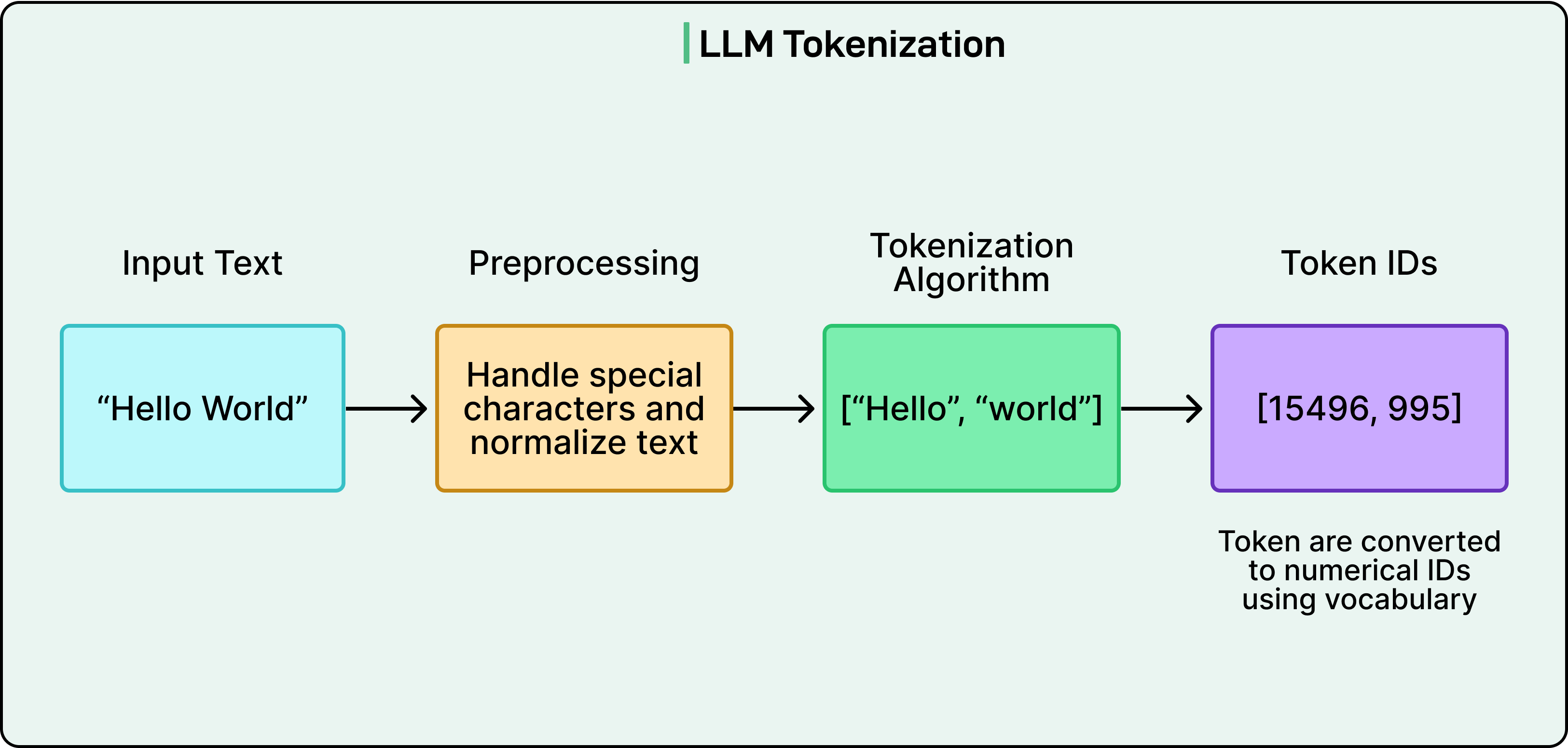 The final preprocessing step is tokenization, which transforms human-readable text into a format the model can process.