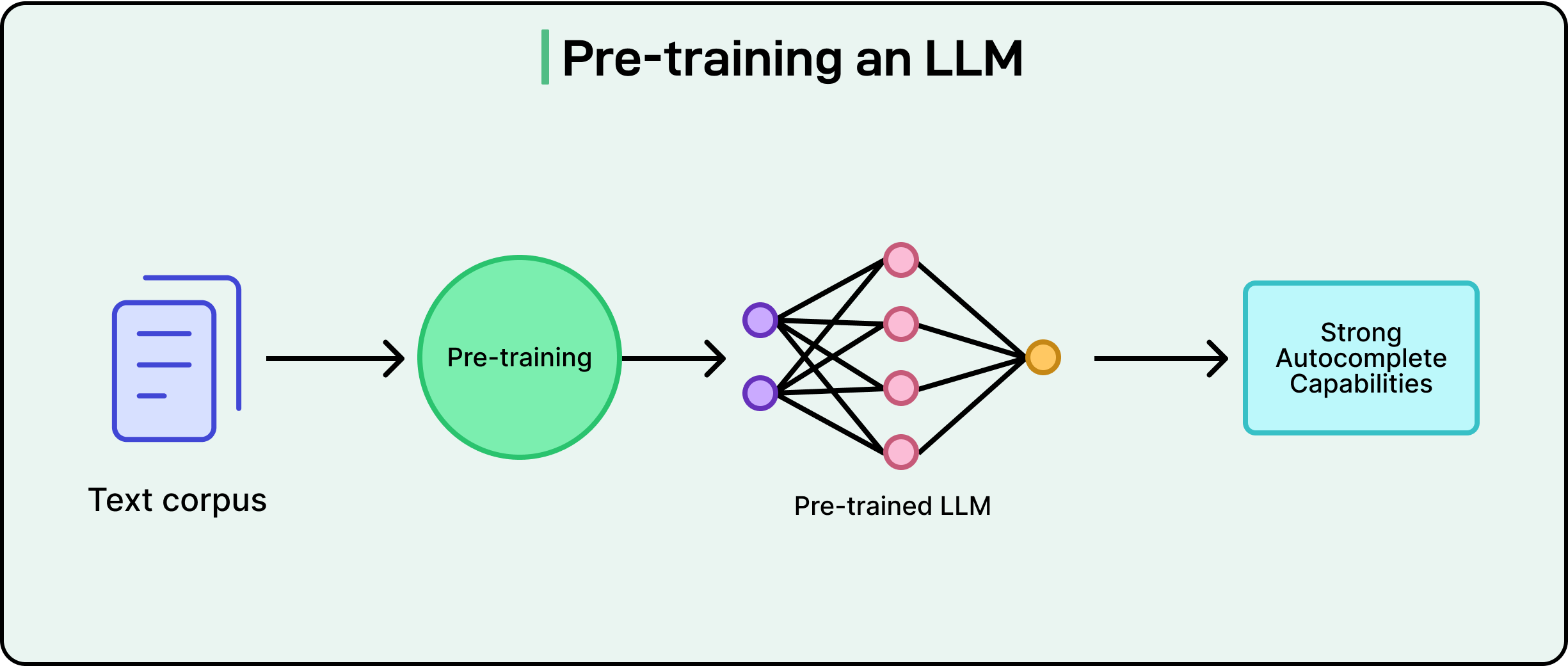 If given a prompt that starts with a question, the pretrained model might continue with more questions rather than providing an answer. It simply completes text in statistically likely ways based on the patterns it has learnt. Transforming this autocomplete system into the helpful assistants we interact with requires additional training phases.