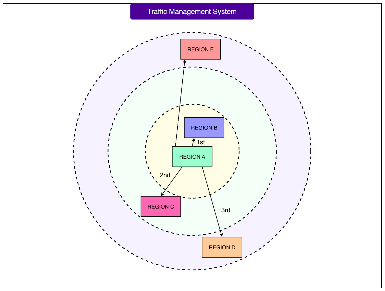 If overloads are severe, the system gradually expands the search radius outward, creating “rings” of nearby regions. Once it finds a stable balance, it locks in a routing table, which is then used for live requests.