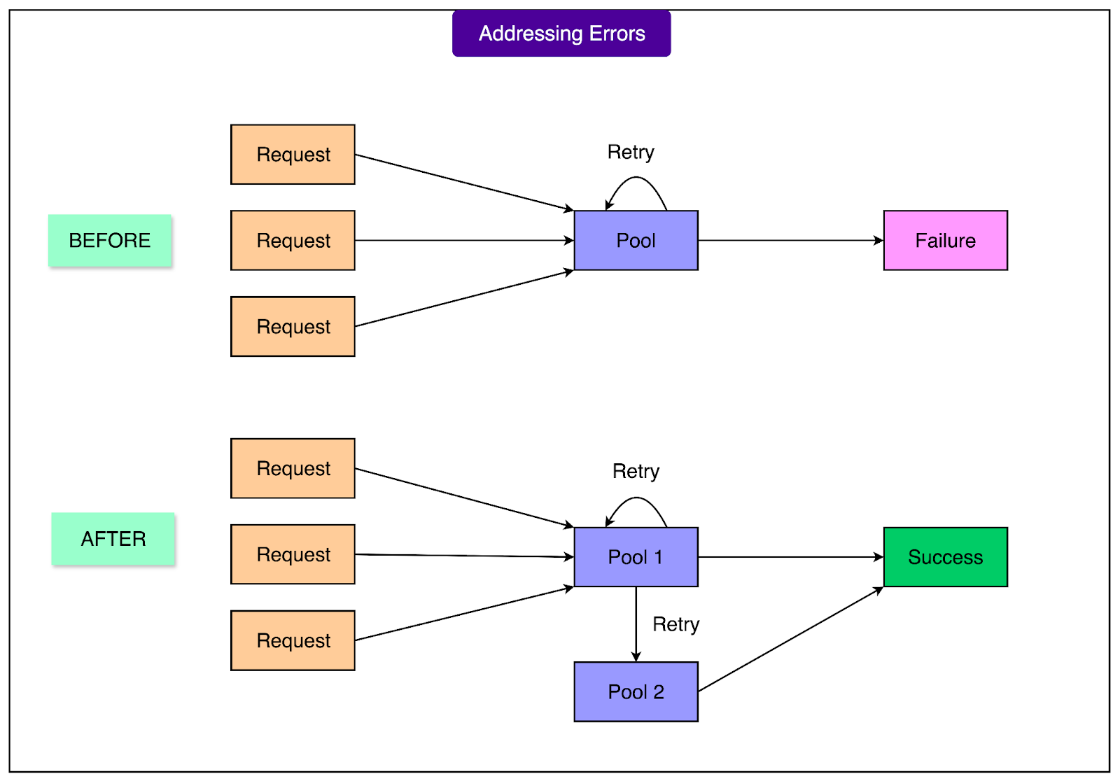 Added exponential backoff for retries, so repeated retries waited progressively longer instead of hammering the system immediately.
