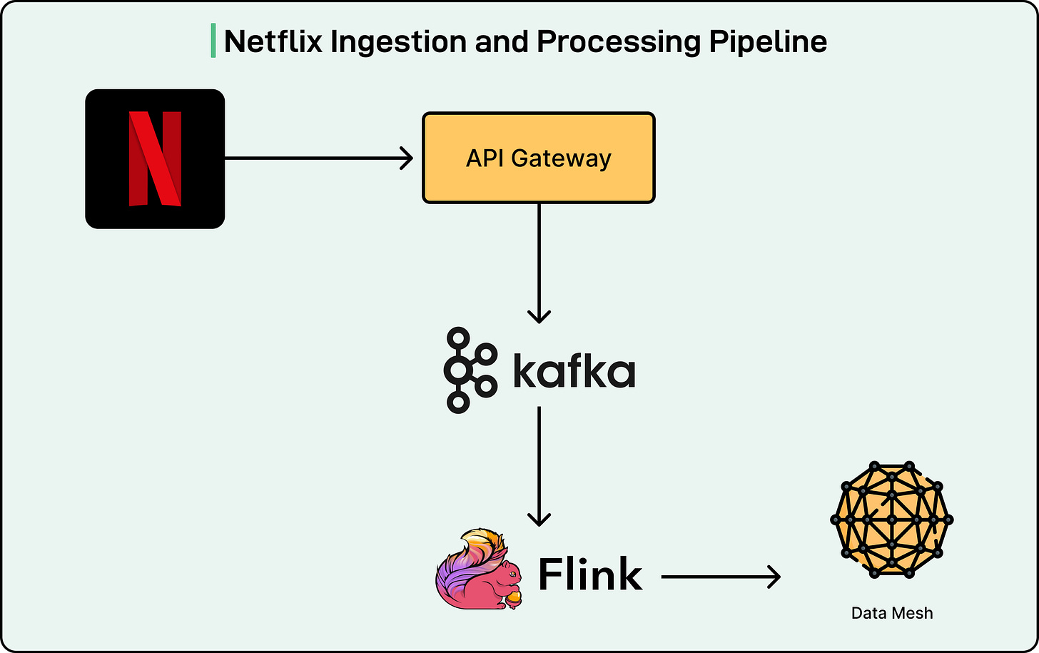 Apache Flink jobs ingest event records from the Kafka streams. Netflix chose Flink because of its strong capabilities around near-real-time event processing. There is also robust internal platform support for Flink within Netflix, which allows jobs to integrate with Kafka and various storage backends seamlessly.