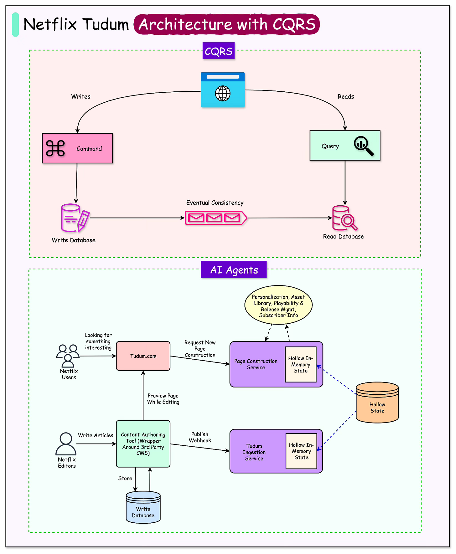 This event-driven design ensured that editorial changes would eventually appear on the Tudum website without impacting write-side performance, while also allowing Netflix to scale the read and write paths independently.