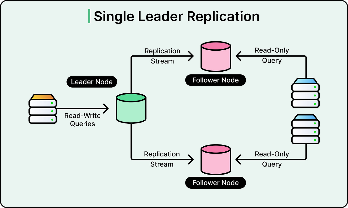 This design creates an inherent bottleneck because writes cannot be distributed. However, for read-heavy workloads like ChatGPT, where users primarily fetch data rather than modify it, this architecture can scale effectively if properly optimized.