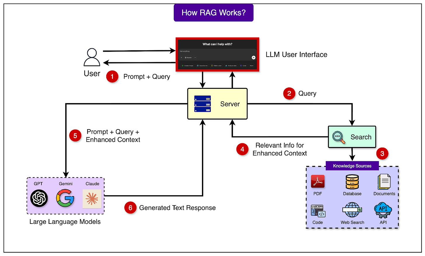At the heart of the system lies the large language model (LLM). Closed-source options like OpenAI’s GPT-4, Anthropic’s Claude, Google’s Gemini, or Cohere’s enterprise models are easy to adopt and deliver strong performance, but they come with vendor lock-in and data privacy concerns. Open-source models like Llama 3, Mistral, or specialized domain models (BioBERT for medicine and FinBERT for finance) give more control and flexibility, but require GPU infrastructure and in-house expertise to run at scale.