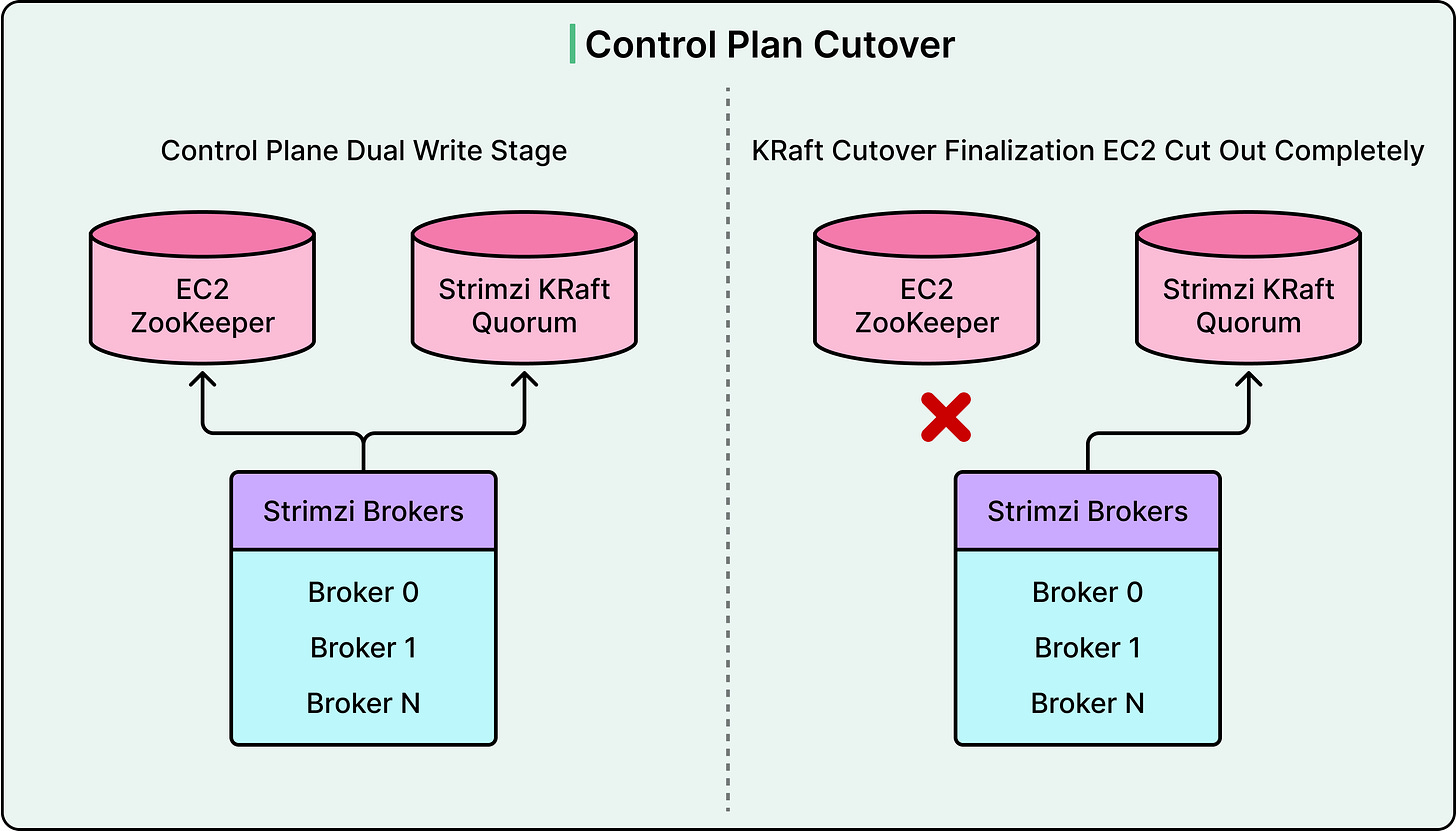 ZooKeeper had managed Kafka’s metadata throughout the entire broker migration. Reddit made a deliberate choice not to change the control plane until after the data plane was fully stable on Kubernetes. This separation of concerns reduced the risk of compounding failures.