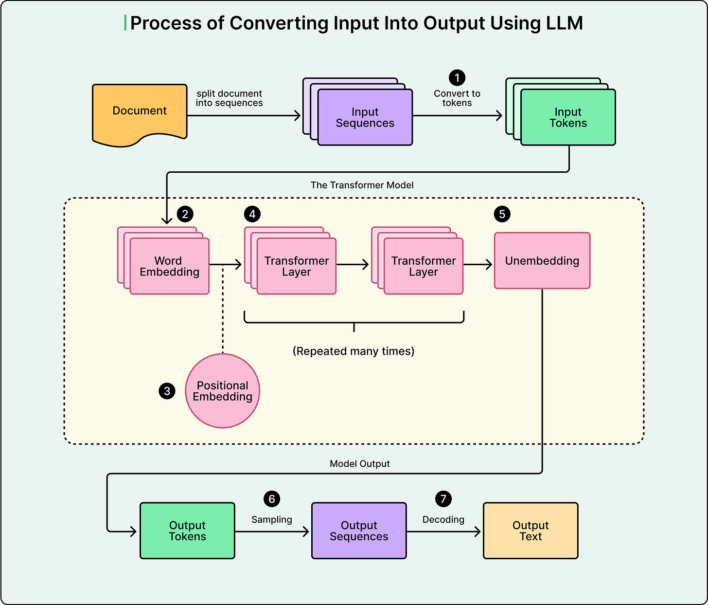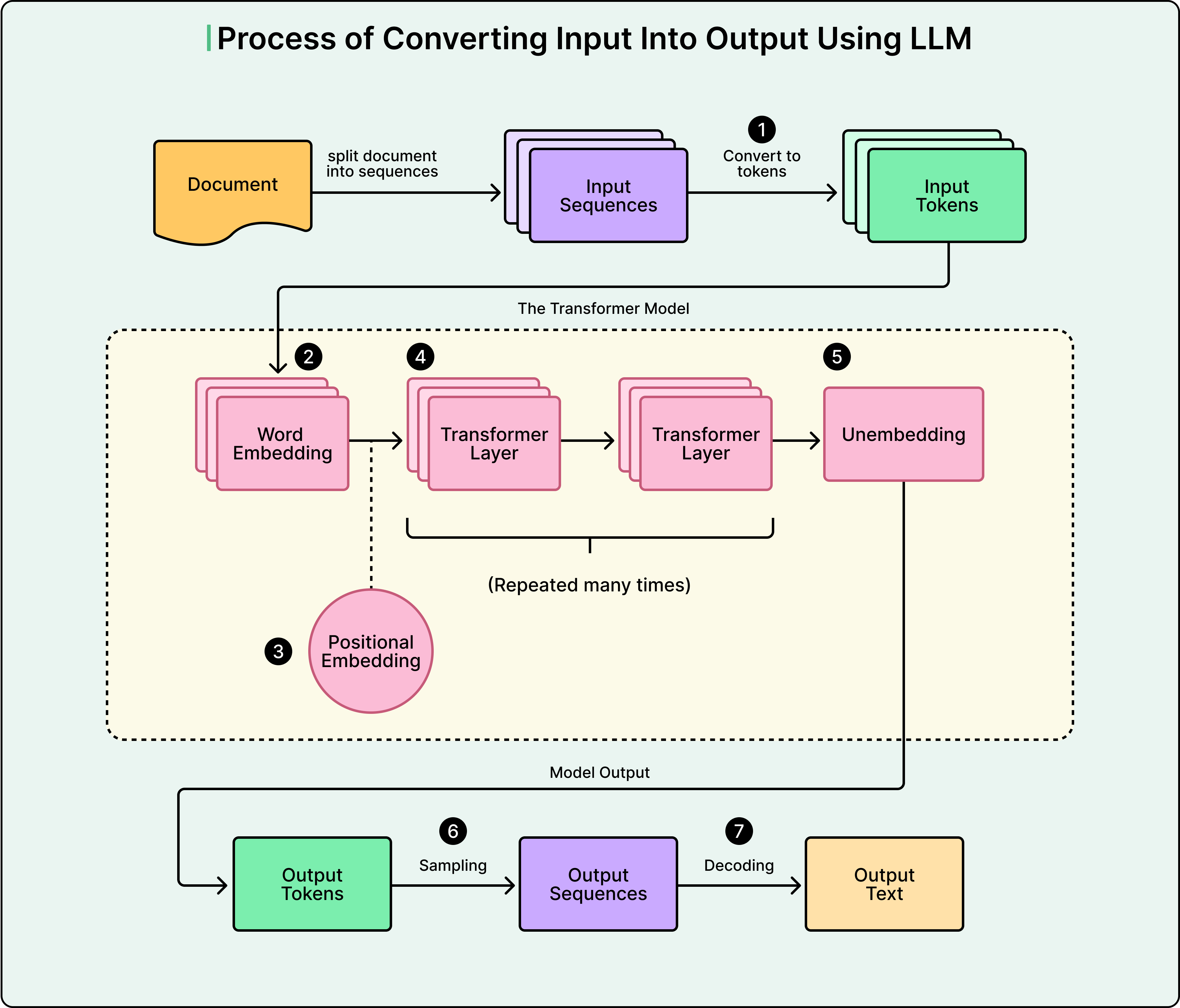 When we interact with modern large language models like GPT, Claude, or Gemini, we are witnessing a process fundamentally different from how humans form sentences. While we naturally construct thoughts and convert them into words, LLMs operate through a cyclical conversion process.