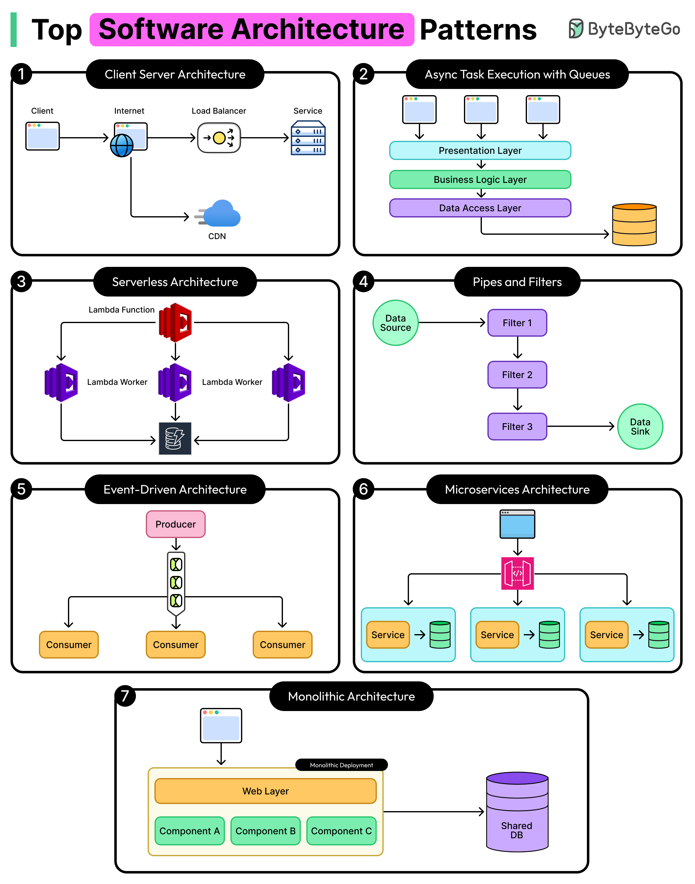 In this article, we will explore the essential architecture patterns that every software engineer should understand. We will look at how each pattern works, when to use it, what performance characteristics it has, and see practical examples of each.