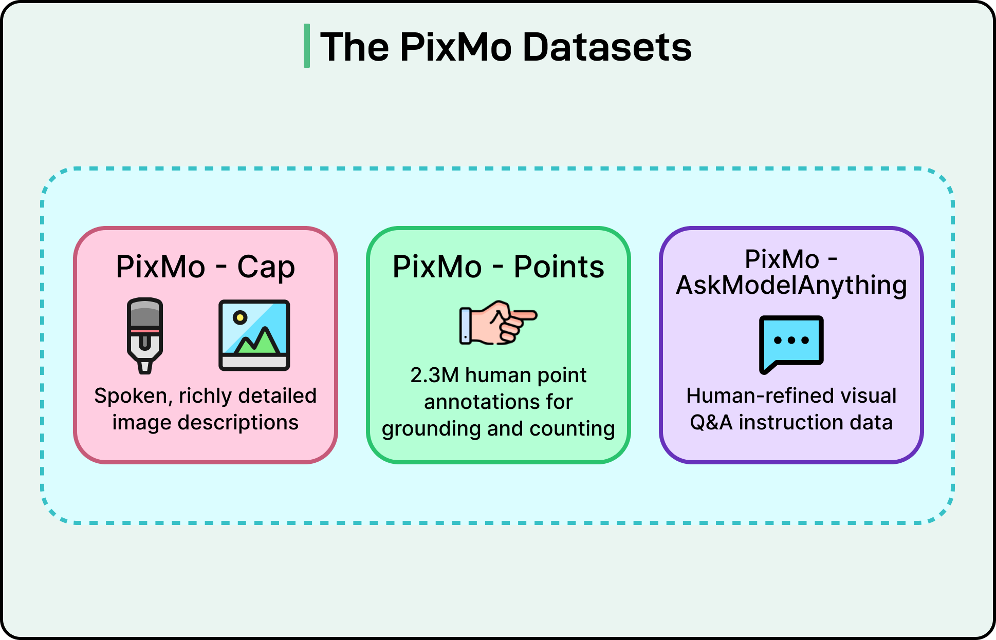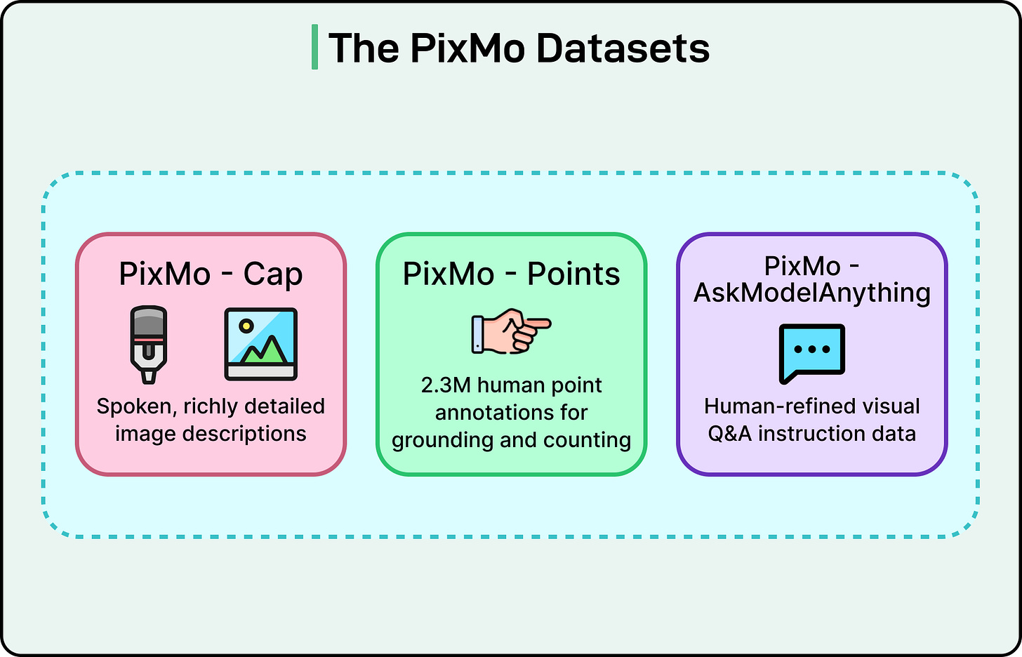 PixMo Points may be the most innovative dataset in the project. The team collected more than two point three million point annotations.