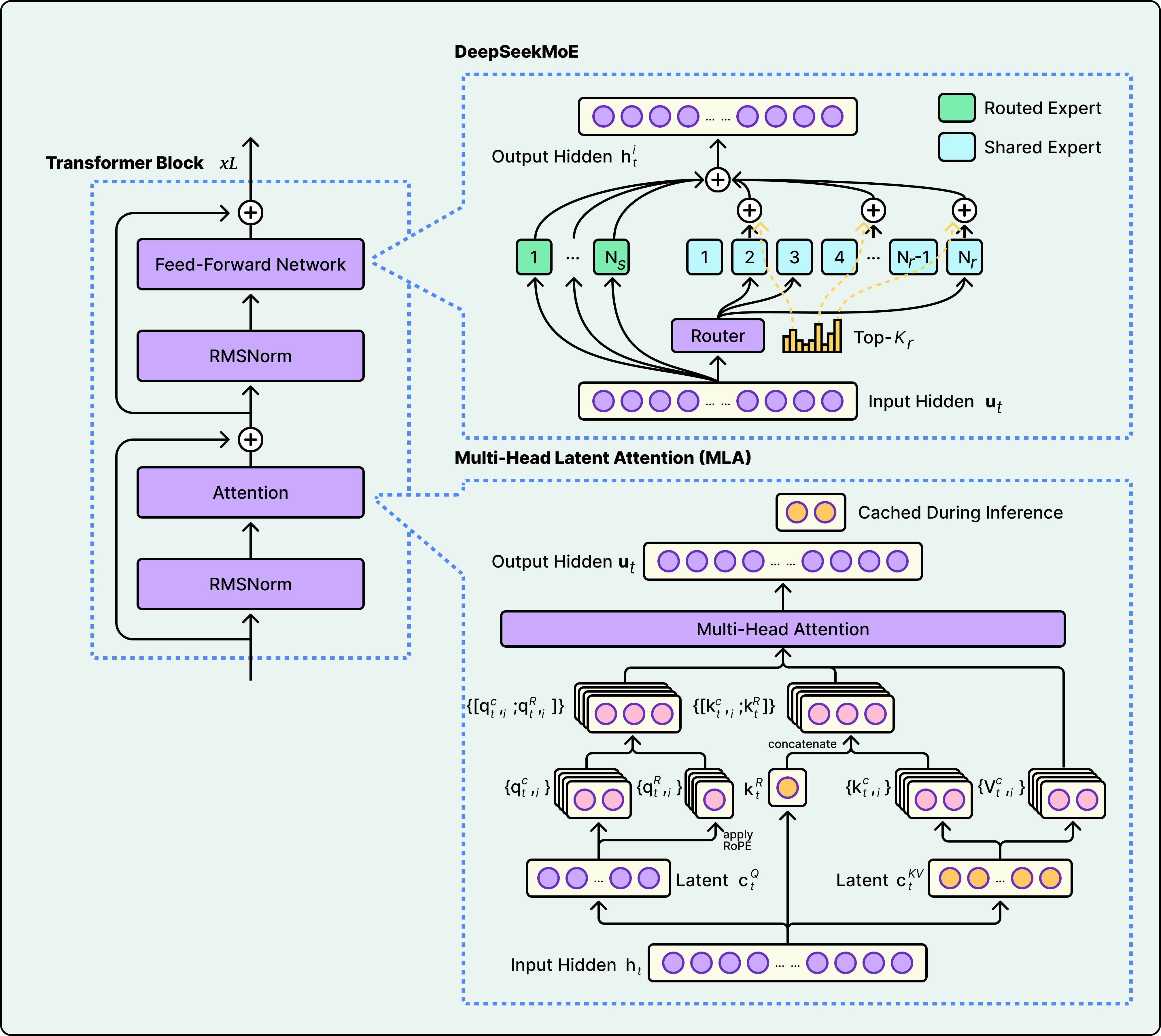 See the diagram below that shows DeepSeek’s Multi-Head Latent Attention approach:
