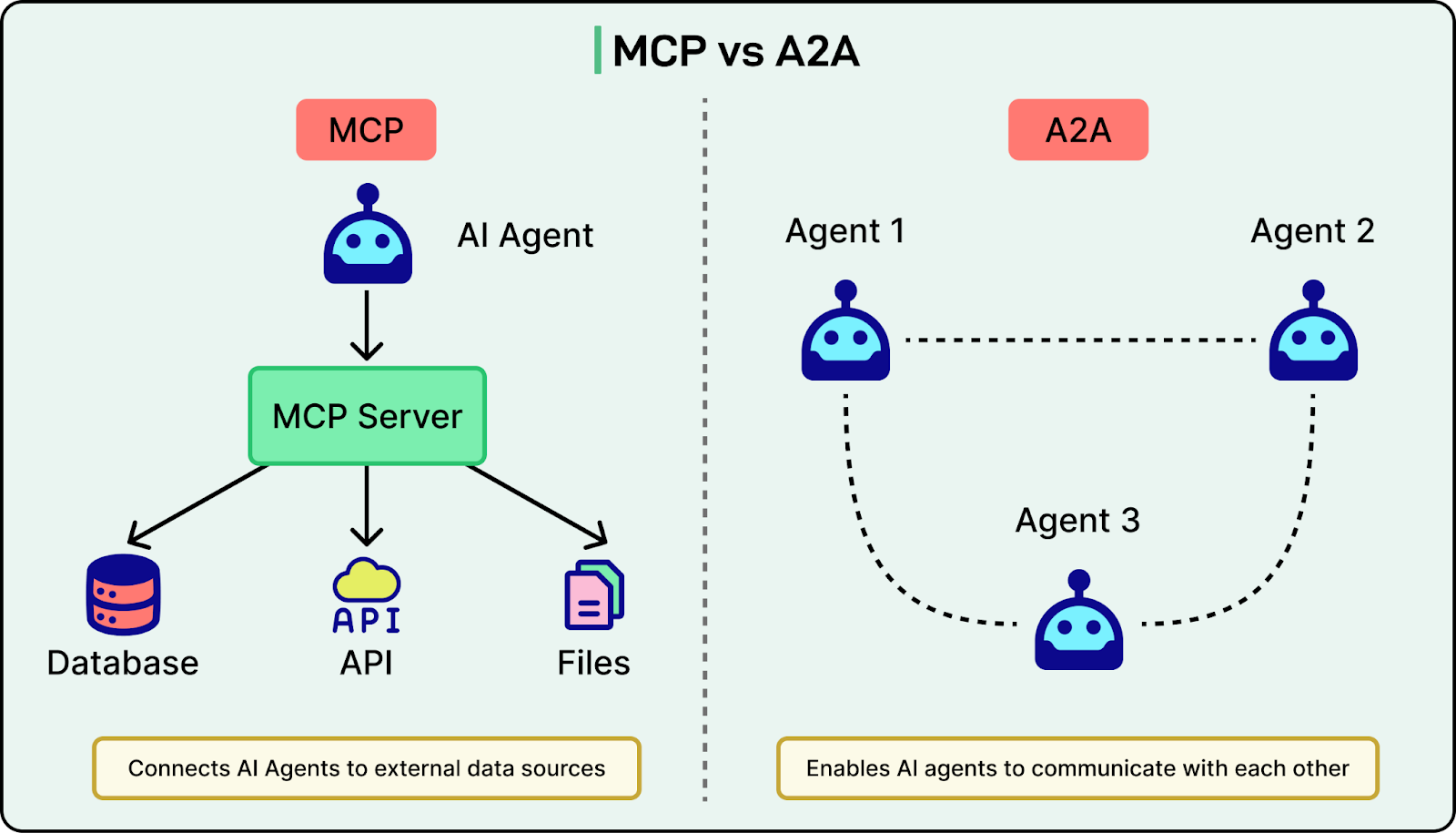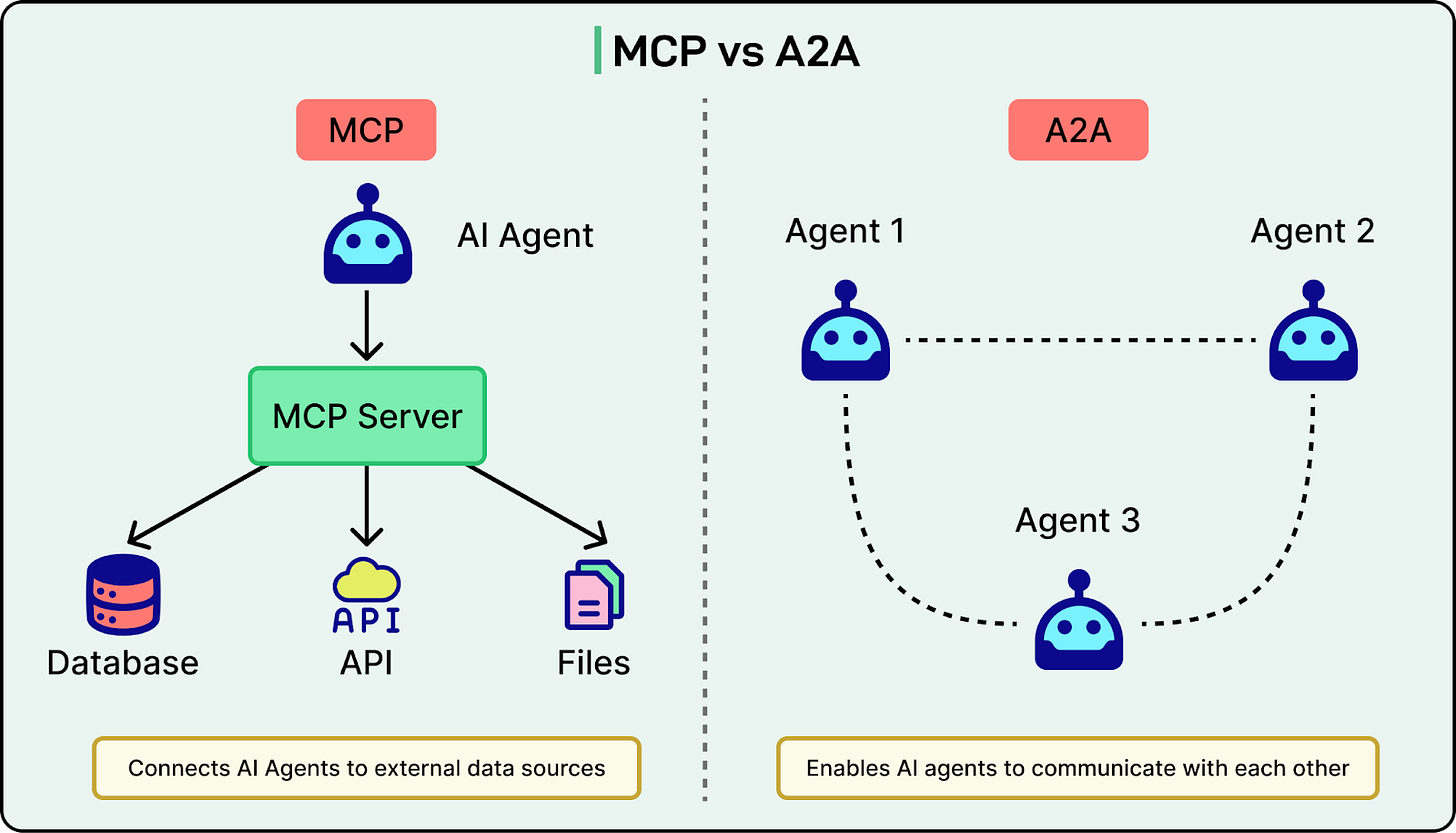 See the diagram below that shows the difference between MCP and A2A on a high level: