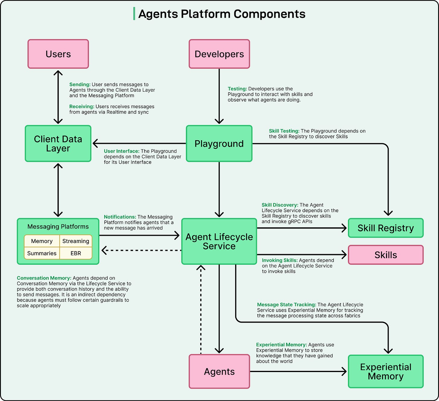 The platform evolved to handle AI agents. This step required new abstractions for defining agents, orchestrating their workflows, ensuring reliability and observability, and maintaining strong security and privacy guarantees.