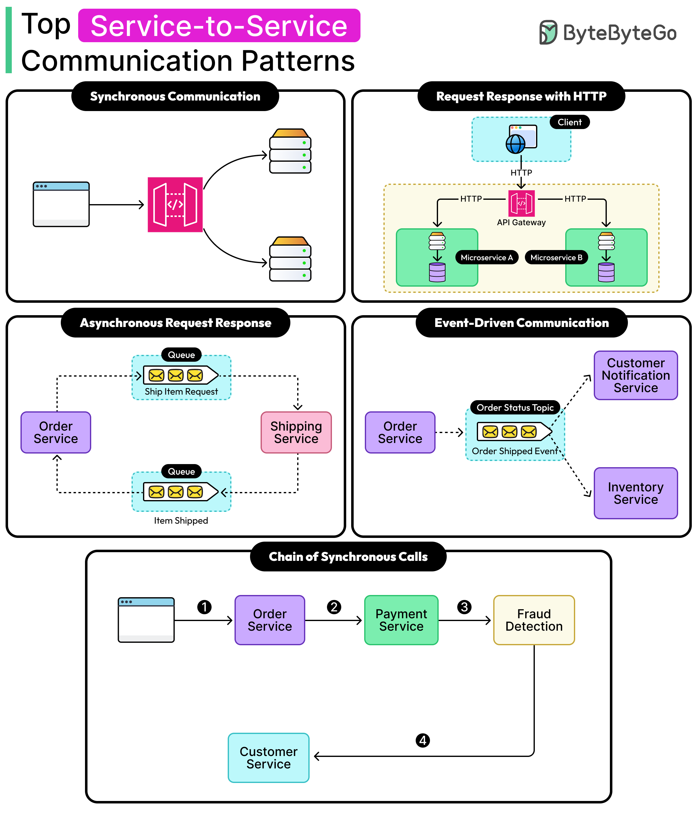 Understanding service-to-service communication patterns helps developers design systems that are reliable and efficient. Some patterns involve services waiting for immediate responses (synchronous or blocking communication), while others allow them to send messages and continue working without waiting (asynchronous or non-blocking communication). Knowing when and how to use these patterns is one of the most important decisions in designing modern distributed systems.